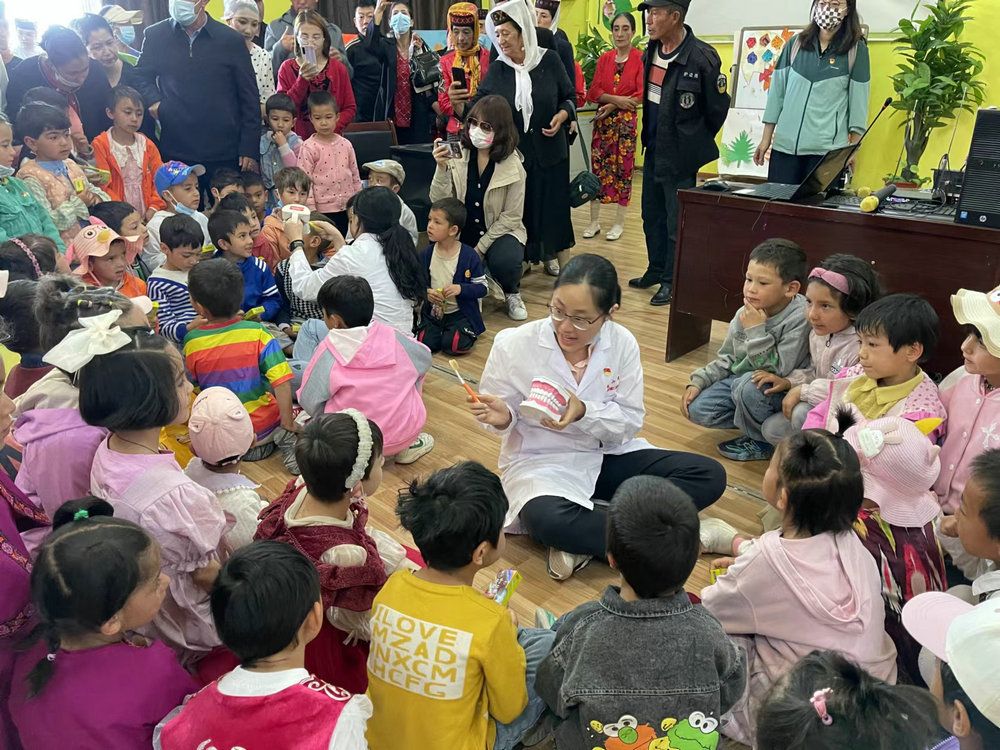 服务队为塔什库尔干县中心幼儿园的小朋友们开展口腔健康宣教、涂氟防龋等服务