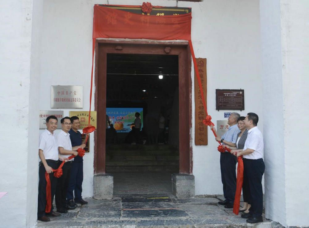 校党委书记陈春声、副书记国亚萍、副书记余敏斌,清远市长温文星,连州市委书记潘正焕,丰阳镇党委书记李剑平共同为村史馆揭牌