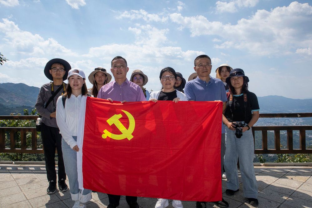与“媒介融合野外实践”党员同学小分队合影
