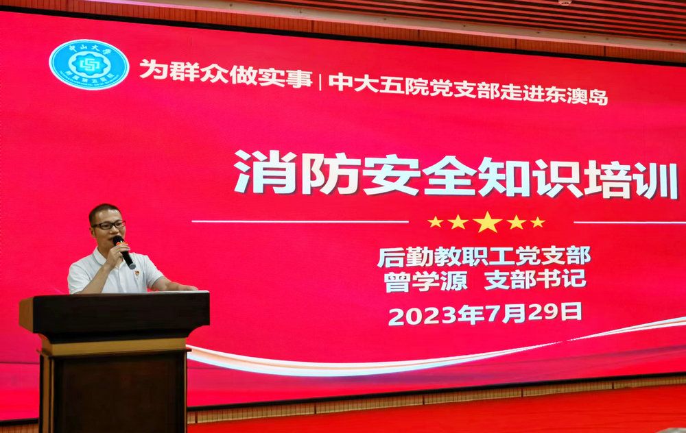 为深入开展学习贯彻习近平新时代中国特色社会主义思想主题教育,高质量开展支部党日活动,让百姓在家门口享受优质医疗服务,7月29-30日,附属第五医院党委书记苗伟带队,内科教职工第一党支部、行政教职工第二党支部、后勤教职工党支部医务人员到东澳岛开展“为群众做实事,送医疗送药品送健康,讲安全讲急救讲卫生”活动,并向东澳村卫生服务中心捐赠了部分常见药品。