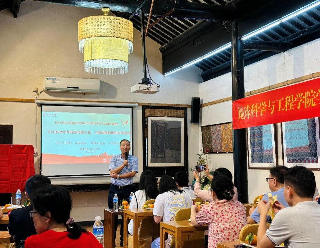5月16日,前往中山詹园参观学习,党委书记何晓钟做题为“学习习近平总书记弘扬中华传统文化重要论述,加强师德和家风建设”专题报告