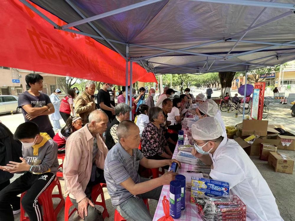 师生党员前往南山镇卫生院和社区,开展口腔健康宣教义诊活动,助力提升南山镇居民口腔健康水平。党员们现场回答群众关于口腔健康的疑问,提出诊疗建议,派发口腔科普宣传单与口腔保健物资,帮助当地居民解决口腔健康问题,以实际行动践行党员初心使命。有群众说,“我们平时也没空到医院看牙,现在家门口有省城来的专家免费检查牙齿,还教我的孙子怎样刷牙,真的很贴心”。