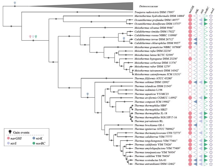 图2. Thermus类群反硝化基因的获得事件