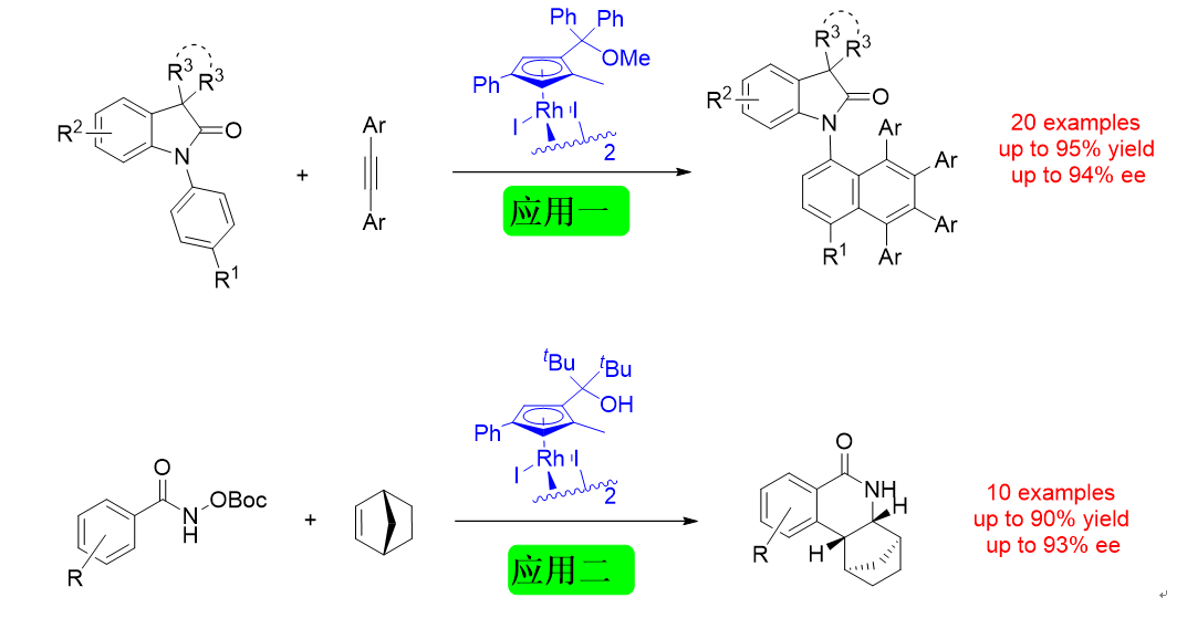 图1. 新型平面手性CpRhIII催化剂应用于两类不对称碳氢活化反应