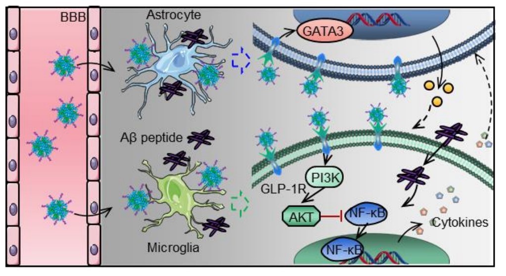 对此,best365中国官方网站附属第三医院邱伟教授联合国家纳米科学中心聂广军研究员等展开了相关研究。近日,他们在国际知名材料科学期刊Nano Today(中科院一区Top,IF=20.722)发表了题为“Regulation of Neuroinflammation with GLP-1 Receptor Targeting Nanostructures to Alleviate Alzheimer’s Symptoms in Disease Models”的研究论文。国家纳米科学中心聂广军和王海研究员、河北师范大学常彦忠教授为共同通讯作者,赵宜鹏博士后(best365中国官方网站附属第三医院)、田丝雨博士(河北师范大学)和张杰博士(国家纳米科学中心)为论文共同第一作者。