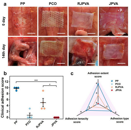 图3. 超结构多孔水凝胶JPVA防止内脏粘连形成的效果图。