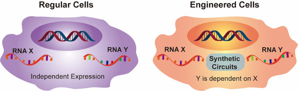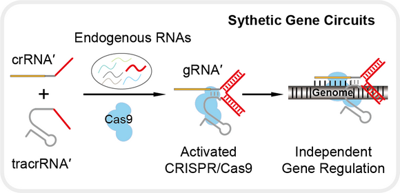 中大新闻网讯(通讯员林娇)生物体内,复杂的基因网络是细胞发挥功能的基础。特定环境下,不同基因间相互交流将决定细胞命运。发展操控生物系统分子工具的一个重要目标是能够人为构建基因回路以调控细胞功能或控制细胞表型。比如,细胞内原本独立表达的X与Y两个基因,在引入人为构建的合成回路后,RNA-X能发挥调控RNA-Y表达的作用(图1)。试想,在癌细胞中,如果X为原癌基因, Y为抑癌基因,在两者间建立基因回路,以原癌基因诱发抑癌基因表达,将可能实现细胞癌变的源头防治;而如果X为病毒基因,Y为免疫相关基因,入侵的病毒引起某些免疫相关基因的表达,将可能实现剧烈地激活免疫反应以清除病毒。因此,建立细胞内源基因的关联调控将可能为细胞引入主动防御机制,以调节其在不同环境下的响应行为,而这也是人工改造细胞的一个重要目的。