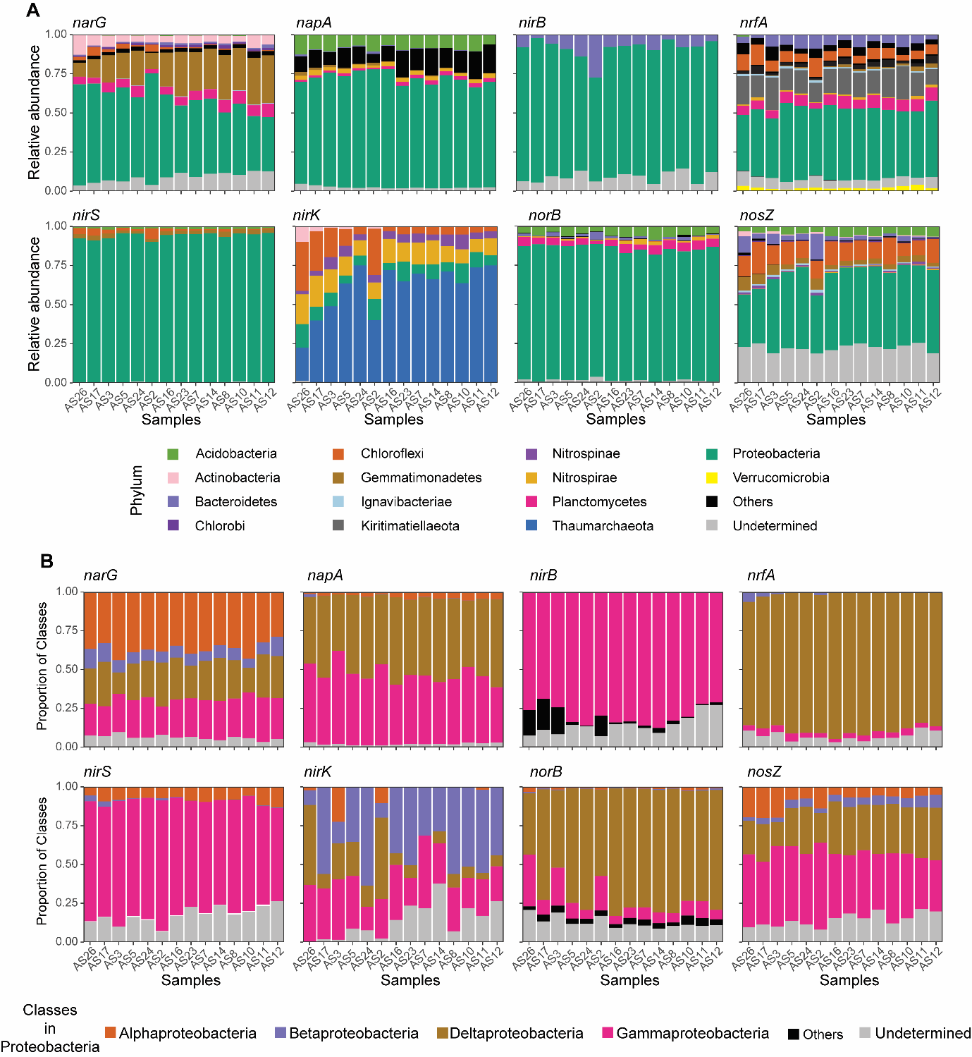 图4. 不同氮循环功能基因的物种组成