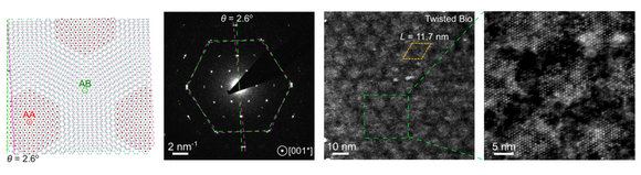 图3. 2.6度转角黑云母摩尔界面的铯离子超晶格表征, 亮点代表Cs+。