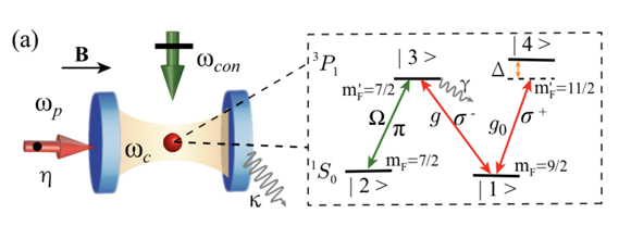 如何产生单光子态是量子科学领域的重要研究课题,它在量子信息处理和量子光学等领域中具有非常重要的应用。实现单光子发射的一个关键技术是光子阻塞。传统光子阻塞主要利用强耦合诱导的系统能谱的非均匀性,而非传统光子阻塞则利用系统中的不同跃迁路径之间的干涉效应。然而,在弱耦合区域内,通过量子干涉机制来形成强的光子阻塞仍然是一个挑战。因此,在大多系统中,足够强的能谱非均匀性还是必须的。此外,耦合原子-腔系统的EIT对应的暗态极化子对损耗不敏感的优势,为通过光控制光来实现大的可调的非线性提供了进一步的机遇。