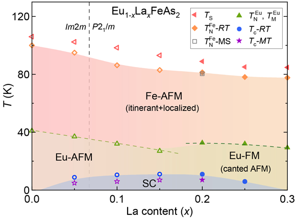 图1. Eu1-xLaxFeAs2的电子态相图