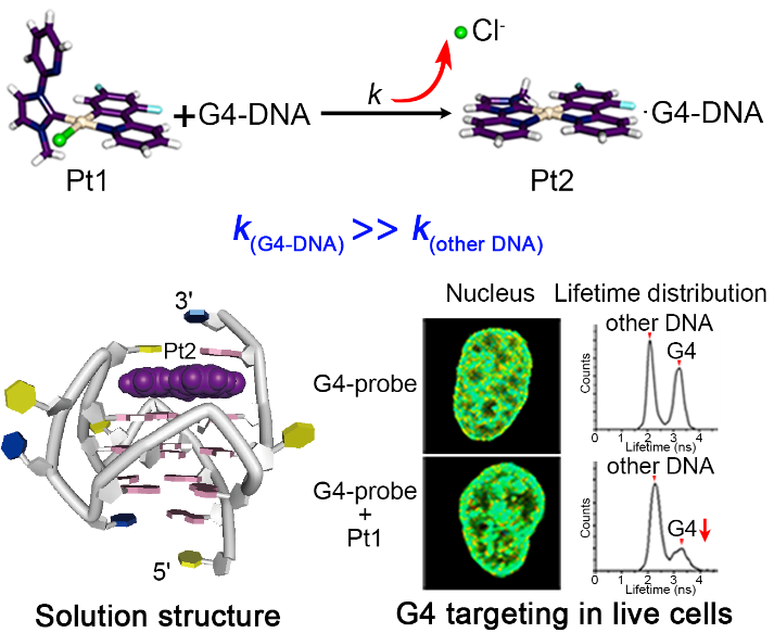 图1. Pt1选择性结合G-四链体DNA