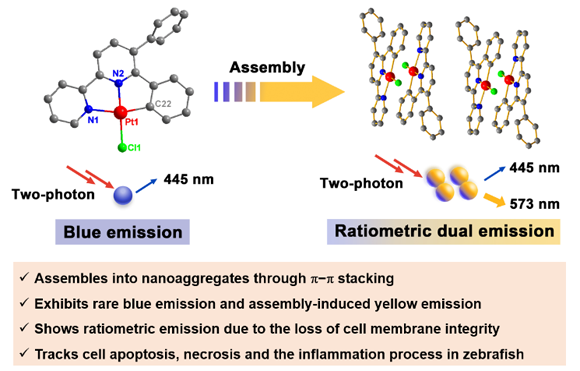 化学学院巢晖教授团队: 基于自组装有机铂(II)配合物的比率型双光子生物荧光成像研究