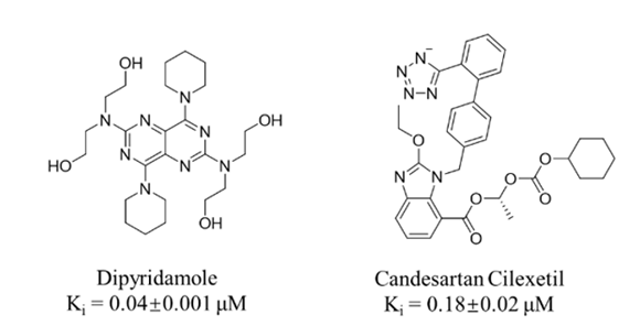 有意思的是,坎地沙坦酯的代谢产物坎地沙坦也对Mpro具有较好的抑制活性。Disulfiram和Atazanavir在其他报道中也被确证为Mpro抑制剂,其余14个均由本文首次发现为Mpro抑制剂。16个药物中,抑制活性最高的化合物为由本方法首次发现的双嘧达莫(Dipyridamole,图3),Ki为40 nM,进一步病毒细胞实验获得该化合物的EC50 为100 nM。特别值得一提的是,在后续两轮多中心临床实验中,验证了该化合物具有较好的治疗效果:在超过100例的临床试验中,普通型新冠患者三周出院率为100%,重型患者三周出院率为87.5%。部分临床结果已发表在药学权威期刊Acta Pharm. Sin. B(2020, 10, 1205-1215),并入选今年7月份该刊的封面故事。