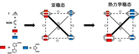 图3. 基于有机笼状与环状化合物的[2×2]自分类组分动态网络示意图