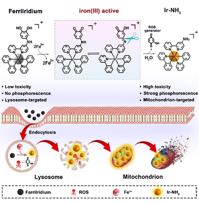 近日,我校化学学院巢晖教授研究团队报道了一例基于铱(III)配合物的胃癌诊疗试剂(FerriIridium)。FerriIridium可被肿瘤细胞溶酶体的不稳定铁池(LIP)特异性激活,生成兼具抗肿瘤活性与磷光发光的次级产物。据了解,这是首例Fe(III)激活的溶酶体靶向铱(III)前药用于胃癌诊疗。