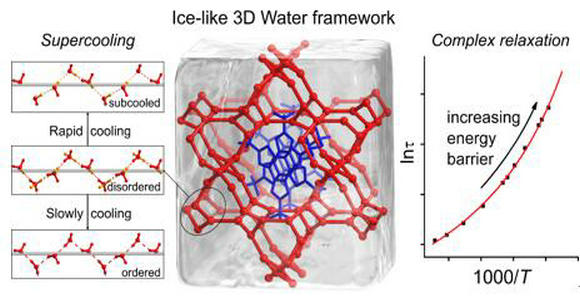新颖类冰三维水网及其过冷现象与类偶极玻璃型介电弛豫行为