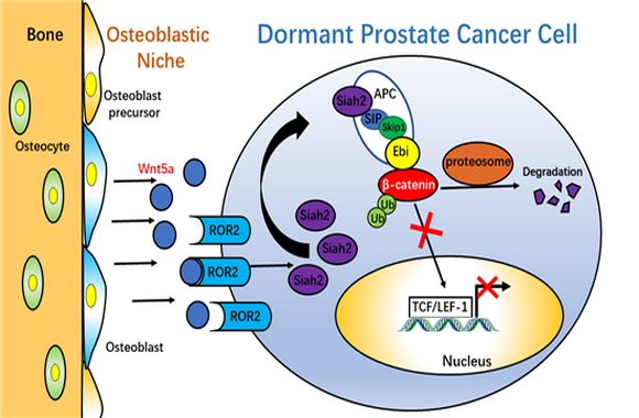 Wnt5aROR2SIAH2信号轴诱导与维持前列腺癌细胞在骨髓中休眠