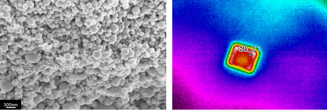 碲纳米颗粒及其光热效应的热像图