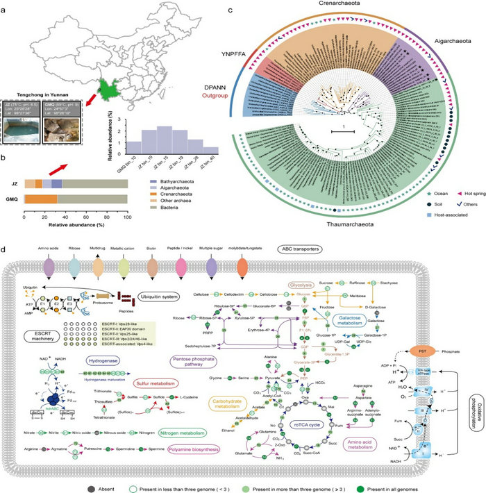 生命科学学院李文均教授课题组在未培养微生物类群——曙古菌门(Aigarchaeota)微生物基因组代谢特征和起源进化研究方面取得重要进展