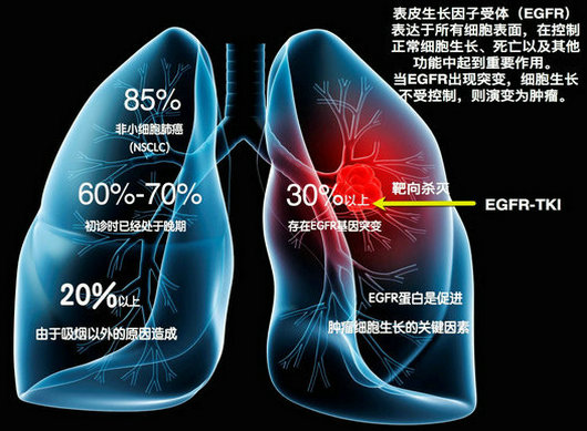 肺癌是我国乃至全球发病率和死亡率最高的恶性肿瘤之一,其中大约有85%的肺癌属于非小细胞肺癌。晚期非小细胞肺癌患者如果仅接受化疗,平均生存时间只有1年左右。而有机会接受靶向治疗的患者,平均生存时间可显著延长到3年左右。