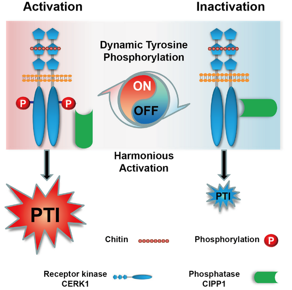 CERK1的酪氨酸动态磷酸化调控模式图