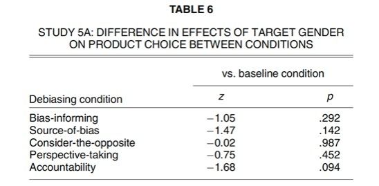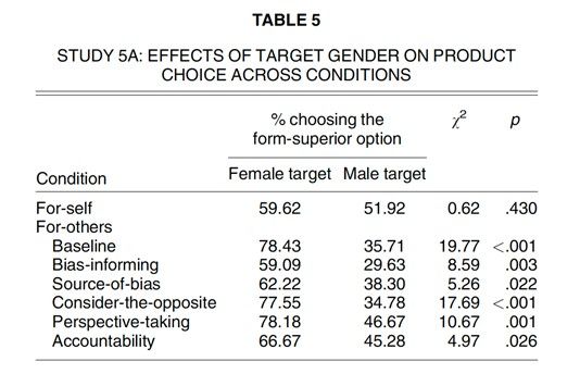 同时实验使用了广泛的决策情景和产品类型证明了该结论的稳健性:实验设置了激励任务(实验1、5B)和假设选择任务(实验2、5A)、公共和私密消费情境(后续实验2)、实用型和享乐型产品(后续实验4)、多样化的决策情景(消费者为自己、他人选择以及自己希望收到的礼物,后续实验3)。另外,实验证明了关于外形优越(vs.功能优越)产品性别差异世俗信念的两个调节变量即信念强度和他人关系远近(实验3A、3B、4)。最后,实验证明无论在假设(实验5A)还是现实情境(实验5B)中现有文献的多种干预方法都无法有效削弱该世俗信念的影响(如下表)。