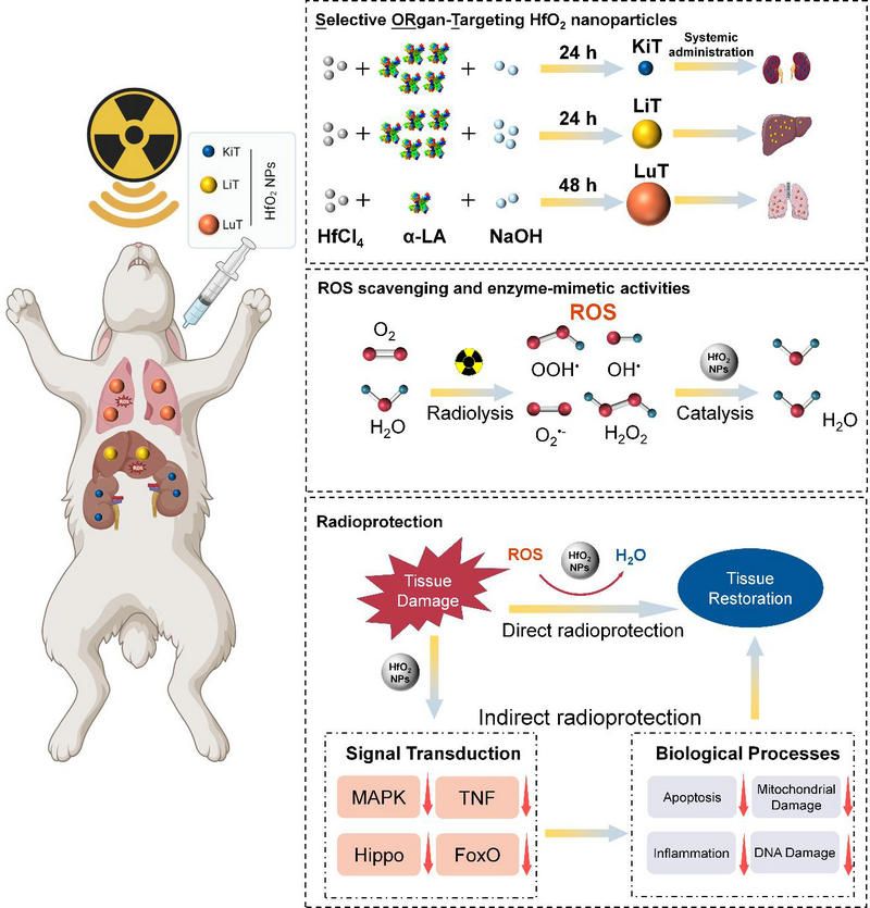 SORT HfO2 NPs对小鼠和兔子的器官靶向性放射防护及其作用机制