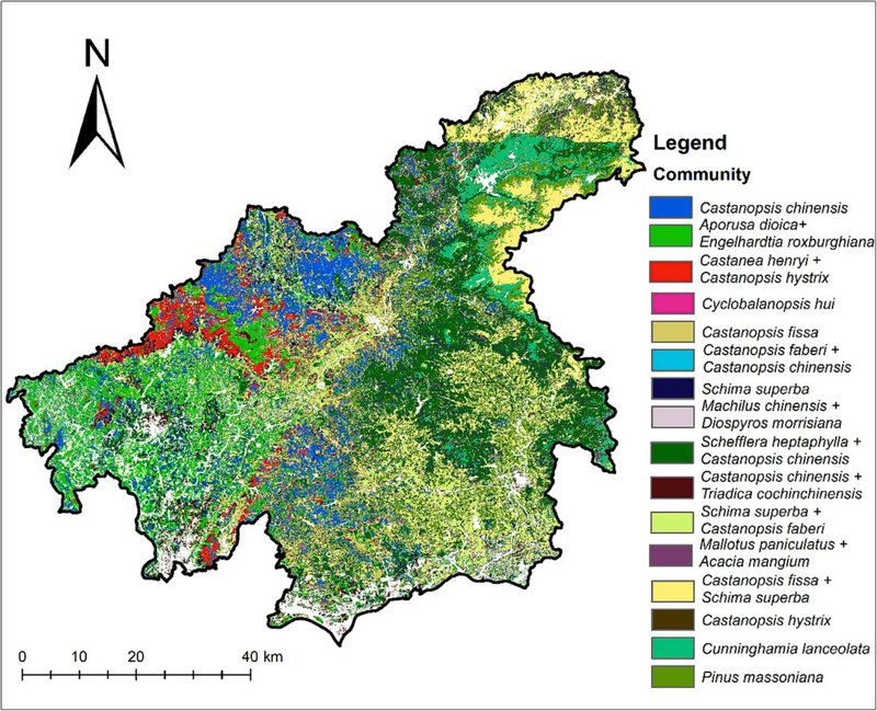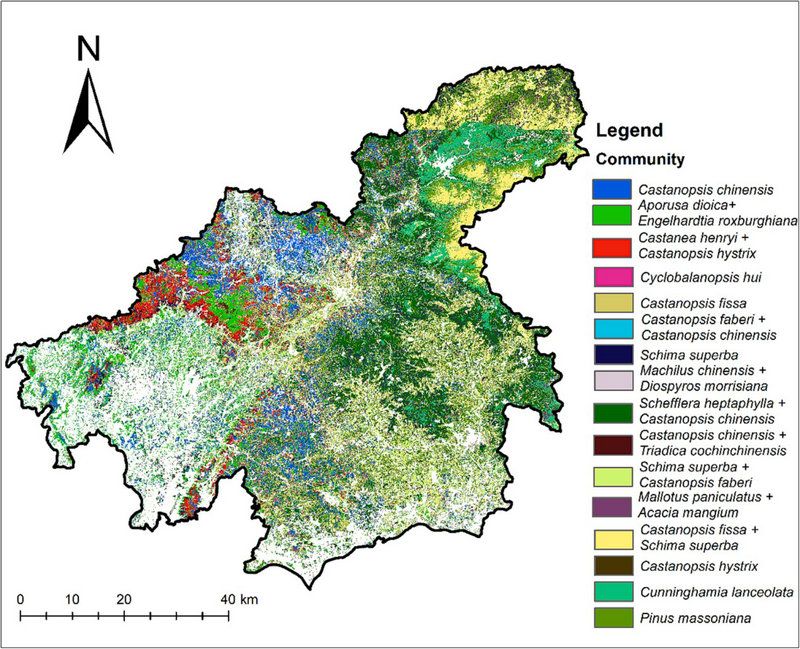 图1 2000年广州市北部地区森林群落分布回溯图