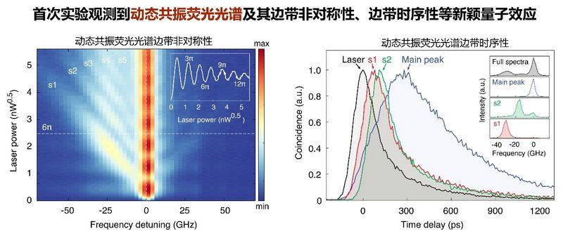 该团队瞄准超快脉冲作用下光场与二能级辐射子如何动态相互作用这一悬而未决的国际前沿问题,首次基于半导体量子点与微柱腔的耦合实现了超快脉冲激光驱动下二能级辐射子动态共振荧光光谱的实验测量,并观测到了边带非对称性,边带时序性等新颖量子效应。这项研究对进一步提升量子光源性能、构建光子数叠加态、光子数纠缠态等新型光量子态以及实现量子态的超快操控具有重要意义。