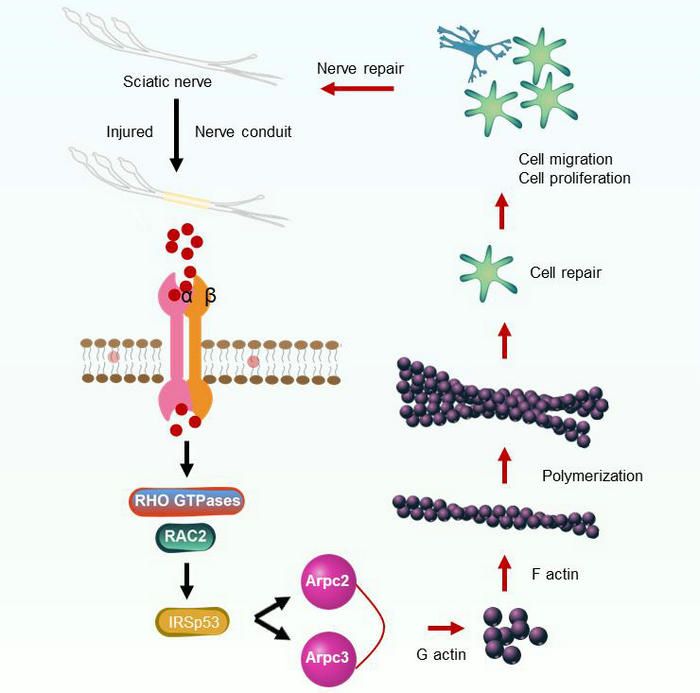 图2. 模量介导周围神经再生的潜在机制示意图。