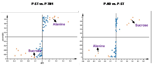 图1. 丙氨酸和蔗糖是褐飞虱适应抗性水稻品种的关键生物标志物