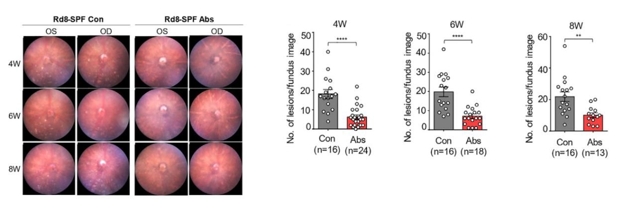 Rd8小鼠视网膜上的退行性改变依赖于微生物侵入