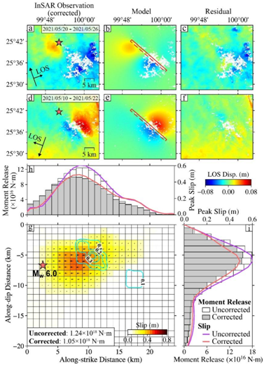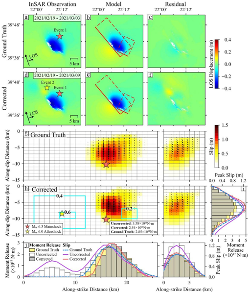中大新闻网讯(通讯员卢乐浚、周宇)地震对社会和人类安全构成重大威胁,其中中强地震(Mw ≤ 6.5)由于具有发生频率高、空间分布广等特点,需要给予更多关注。探究地震破坏机制,关键在于准确地认识同震滑动分布。目前获取中强地震的同震滑动主要依赖于干涉合成孔径雷达技术(InSAR),但传统InSAR方法所获取的同震滑动分布存在一定问题:中强地震通常在短时间内(几分钟到几天)伴有多次前震和余震,而InSAR观测由于时间分辨率有限(重返周期多为数天至数十天),无法将主震与前震-余震形变区分开。因此,传统的InSAR方法可能会使得主震滑动严重高估,进而影响我们对地震物理过程的认识。