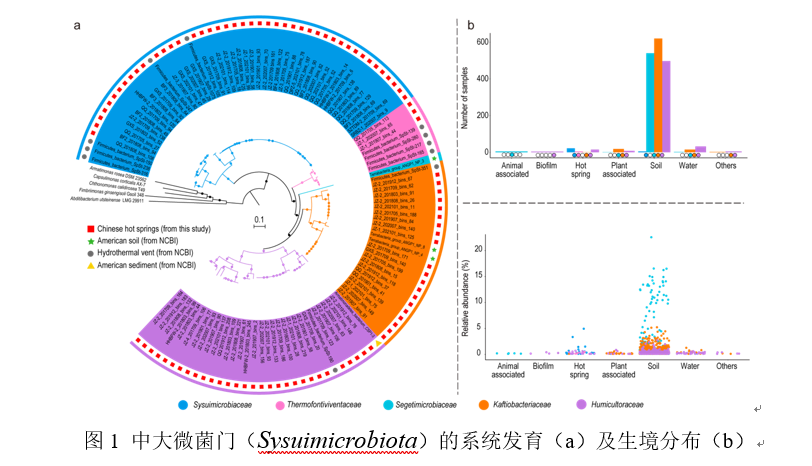 该成果以题为“Insights into chemoautotrophic traits of a prevalent bacterial phylum CSP1-3, herein Sysuimicrobiota”的论文发表在《National Science Review》学术期刊上。我校生命科学学院博士后刘兰为本论文的第一作者,李文均教授和焦建宇副研究员为共同通讯作者。我院连政汉、吕爱萍、李蒙蒙、谭莎、罗振豪、袁洋、明语真、欧阳玉婷、刘泽涛、胡超建、陈瑛,印度国家农业食品生物技术研究所Nimaichand Salam,天津大学张坚超副研究员,广东省科学院生态环境与土壤研究所孙蔚旻研究员,中国科学院新疆生态与地理研究所高磊博士,中国科学技术大学花正双教授、李昱娴博士后,华南师范大学束文圣教授及内华达大学拉斯维加斯分校Brian P. Hedlund教授为本文的共同作者。该研究得到了国家自然科学基金和国家科技基础资源调查计划等项目的资助。
