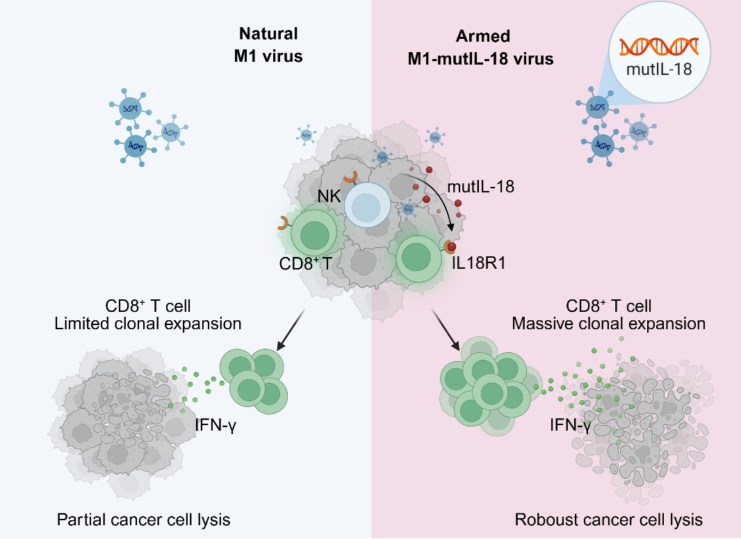 颜光美梁剑开团队构建“强效型”溶瘤病毒M1-mutIL-18