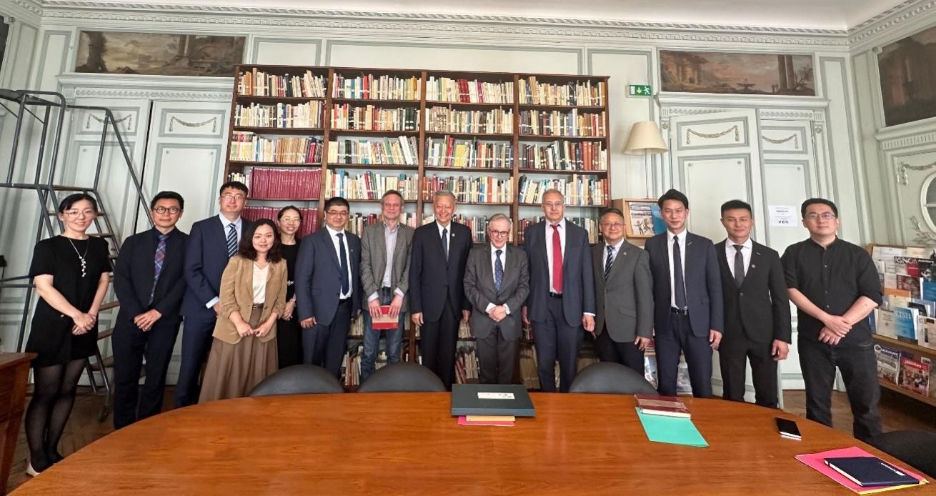 6月20日下午,陈春声书记率代表团一行访问了法国海外科学院,与科学院终身秘书长Dominique Barjot教授、科学院图书馆馆长Pierre-Yves BELFILS教授、联合国教科文组织前外交官Andrei Chevelev、联合国教科文组织非洲优先与对外关系部门亚太事务部对外关系专员、best365中国官方网站2006级本科校友王玮博士等开展了深入交流。法国海外科学院是1922年成立的致力于全球法语国家与地区研究的国家级科研机构,目前拥有院士275人,也是相关地区研究资料最丰富的单位。海外科学院在法国区域国别研究、海外领地治理以及国际发展援助等领域也发挥着重要作用。