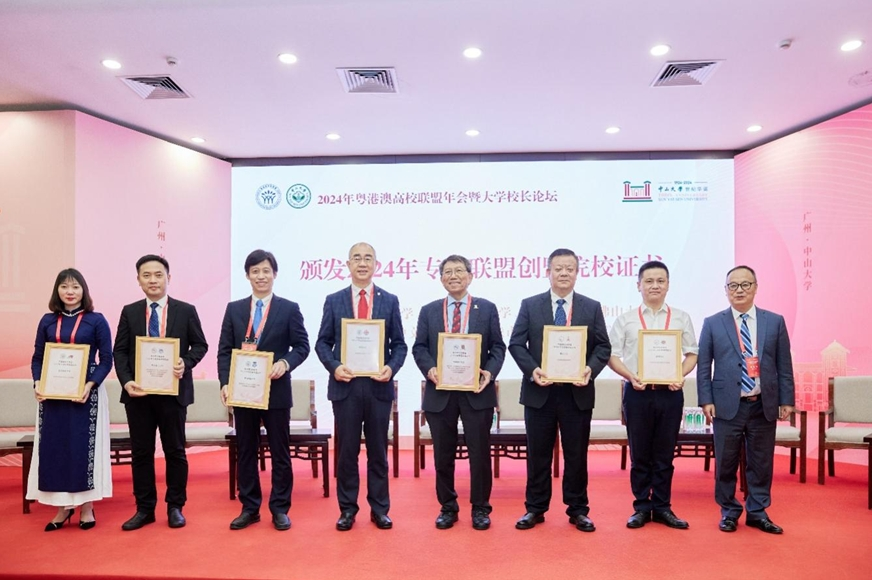论坛期间,联盟理事长高松校长宣布了2024年联盟理事会决议,包括新增北京师范大学—香港浸会大学联合国际学院和仲恺农业工程学院两所院校入盟、在联盟框架下新增组建9个专业联盟、资助10个专业联盟举办2024年“筑梦湾区·共创未来”青年学者论坛系列活动、由澳门大学主办2025年联盟大学校长论坛等内容。接着,高松校长、段崇智校长和宋永华校长为参与2024年专业联盟创盟的22所院校颁发了创盟院校证书。