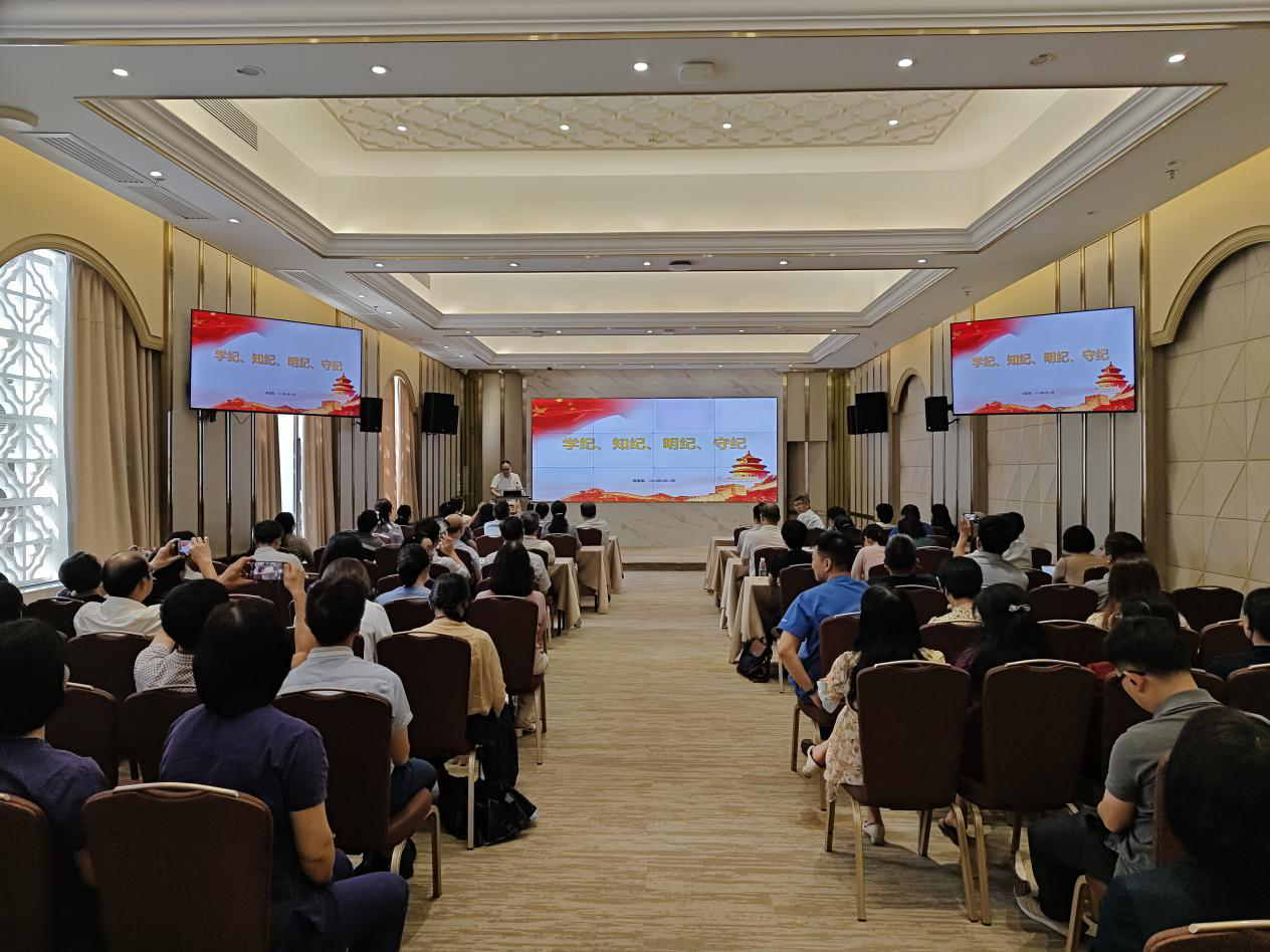 中大新闻讯(通讯员吕雅杰)为深入学习贯彻习近平新时代中国特色社会主义思想和党的二十大精神,推动党纪学习教育走深走实,6月17日,best365中国官方网站光华口腔医学院·附属口腔医院党委书记陈望南讲授《学纪、知纪、明纪、守纪》主题党课,院党政领导班子成员、中层干部、党支部书记共计百余人参会学习。