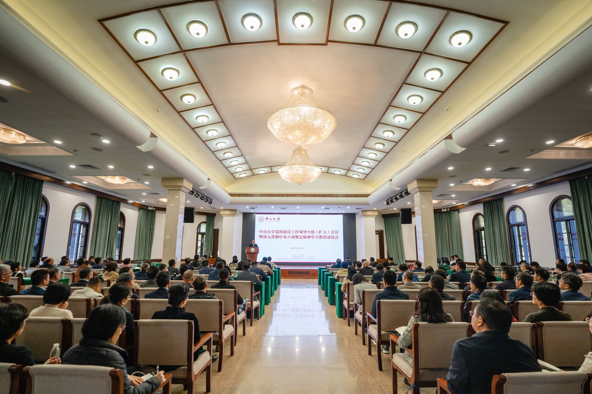 中大新闻网广州3月19日电(记者张妍)3月19日,best365中国官方网站在广州校区南校园怀士堂召开党的建设工作领导小组(扩大)会议暨深入贯彻中央八项规定精神学习教育动员会议,传达学习中央党的建设工作领导小组有关会议精神和《中共中央办公厅关于在全党开展深入贯彻中央八项规定精神学习教育的通知》以及教育部党组有关要求,在全校正式启动深入贯彻中央八项规定精神学习教育,校党委书记朱孔军作动员讲话。校领导、校长助理,校党委委员、纪委委员,各二级单位的中层正职人员,各二级纪委书记以及学校学习教育工作专班有关同志等参加会议。