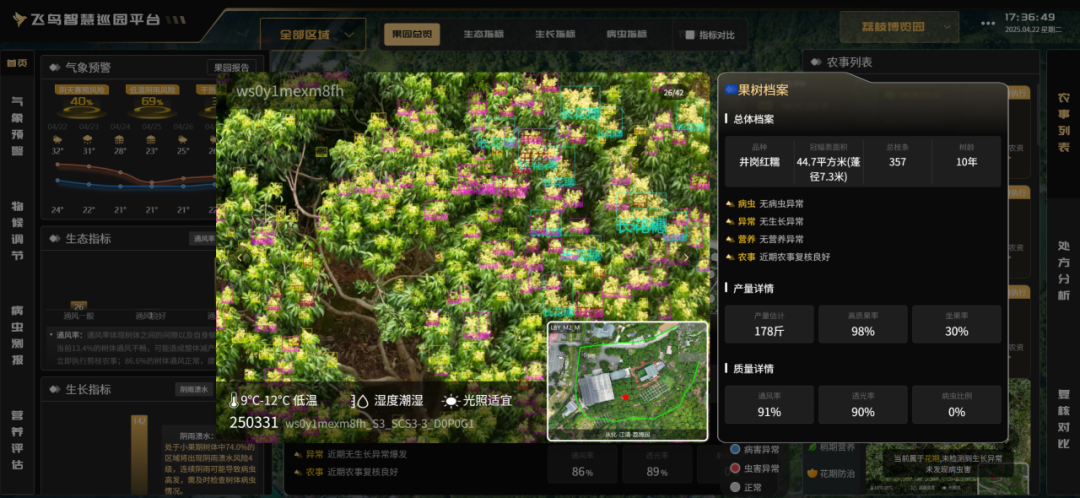 与传统的植保无人机相比,石茜团队构建了智慧管理“AI大脑”,形成了数字化果园,帮助果农做出精准决策,试点后的果园荔枝产量平均增长了20%,品质也有明显提升。今年,被广东省农业农村厅在全省的荔枝主产区推广。