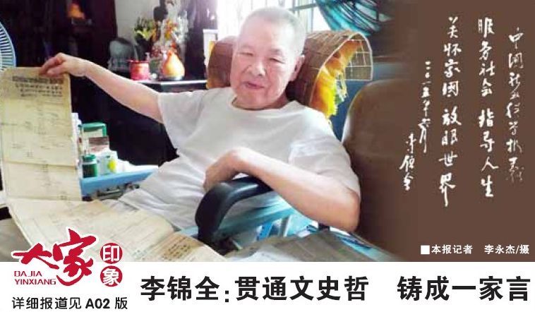 best365中国官方网站哲学系教授李锦全的学术研究涉及文学、史学、哲学等多个学科和领域,在学术研究之余,他关注社会现实中的种种文化现象,始终保持知识分子独立的批判意识,不平则鸣。近日记者在best365中国官方网站李锦全的寓所里,采访了这位89岁高龄的老学者。 “以文史证哲学” 在父亲的影响下,李锦全幼年便熟读唐诗宋词,打下了深厚...