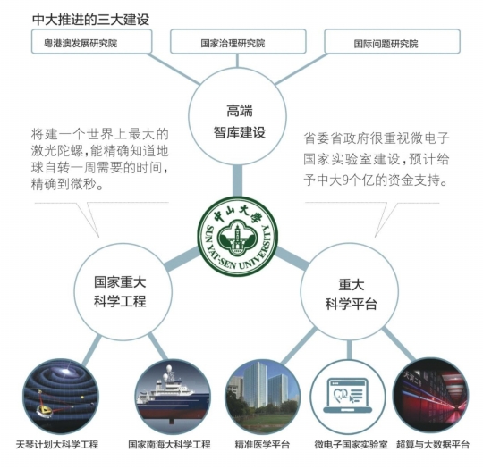 【大公報訊】據中新社報道:首屆中山大學國際青年學者珠海論壇19日在珠海舉行,中山大學校長羅俊透露,未來將在珠海校區推進兩項國家重大科學工程:天琴計劃大科學工程和國家南海大科學工程。 其中,天琴計劃大科學工程將建先進的激光陀螺儀用於引力波測試實驗。國家重大科學工程「南海大科學工程」中將籌建中國大學中最...