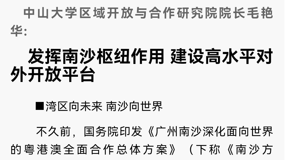 ■湾区向未来 南沙向世界不久前,国务院印发《广州南沙深化面向世界的粤港澳全面合作总体方案》(下称《南沙方案》)。《南沙方案》提出,要加快推动广州南沙深化粤港澳全面合作,打造成为立足湾区、协同港澳、面向世界的重大战略性平台。best365中国官方网站区域开放与合作研究院院长毛艳华表示,南沙在地理上、历史上、制度上具有...