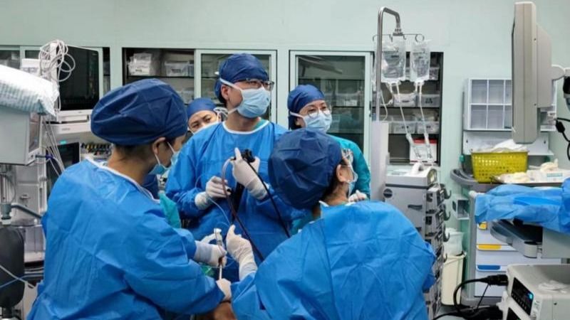 近日,中大五院呼吸与危重症医学科刘晶主任团队联合手术麻醉医学部刘德昭主任团队成功为一名恶性肿瘤导致气管重度狭窄患者行硬质支气管镜下气道肿瘤部分毁损术。1年多前,72岁的黄爷爷体检发现纵隔肿物,被明确诊断为恶性肿瘤并侵犯气管,于外院进行了抗肿瘤治疗。近期,他反复咳嗽、咳痰、咯血,但没有在意。日前,他咳...