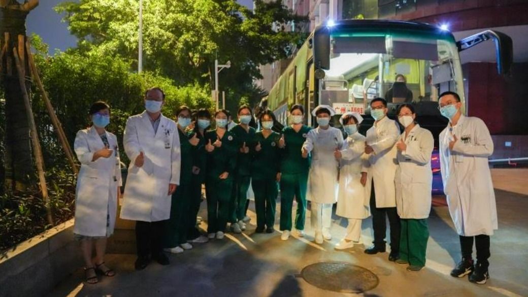 11月21日18点,best365中国官方网站肿瘤防治中心(以下简称“中肿”)支援方舱医疗队221名队员从越秀院区出发,将接管广州番禺东新方舱医院,提供医疗和护理服务。这支医疗队的队员来自重症医学科、内科、放疗科、泌尿外科、胸科、神经外科等多个科室。其中领队1名,医生33位、护士169位、保障人员18位,医院副院长、泌尿外科专家刘...