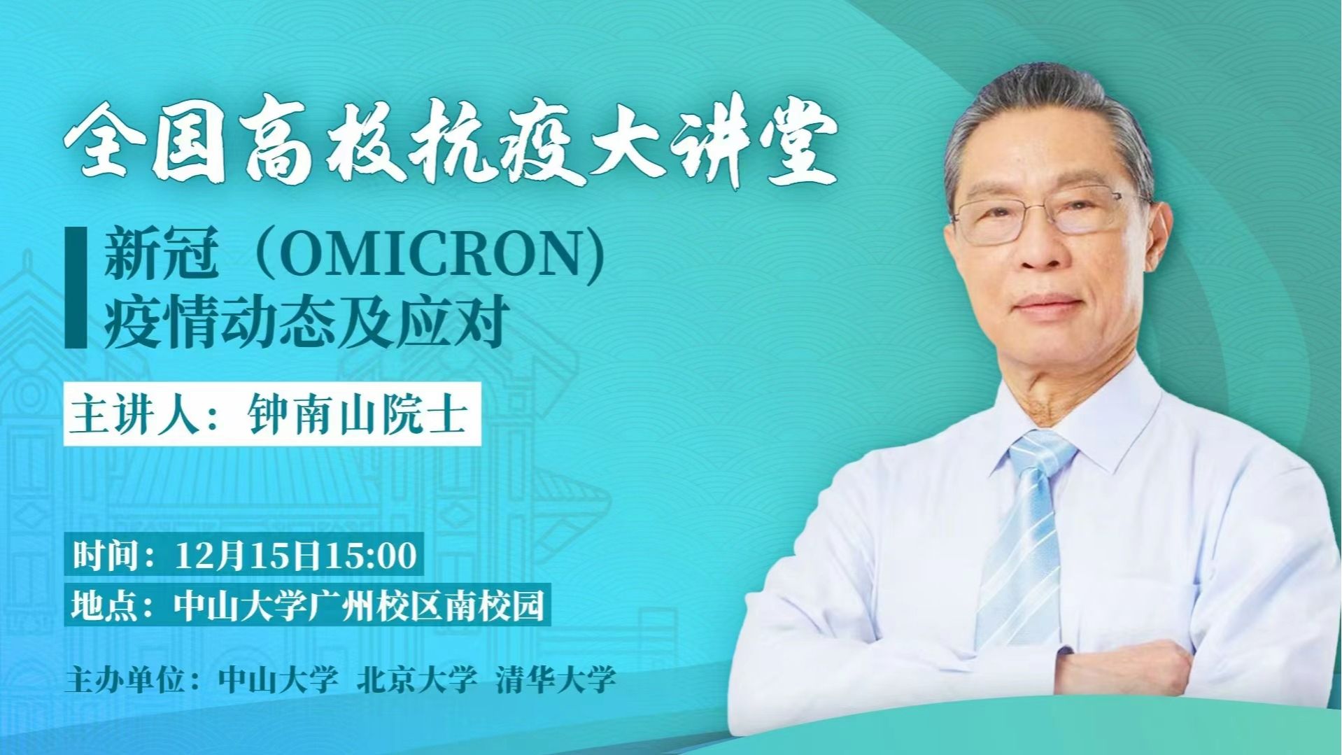 本报北京12月15日讯(记者 余闯 王佳实)今天,中国工程院院士、“共和国勋章”获得者、著名呼吸病学学家钟南山在best365中国官方网站举行的全国高校抗疫大讲堂上,主讲“新冠疫情动态及应对”。钟南山表示,奥密克戎病毒发展到目前为止,相当于上呼吸道感染,基本不会造成肺炎,也极少造成重症,“我们不要因为感染而恐惧”。近两...
