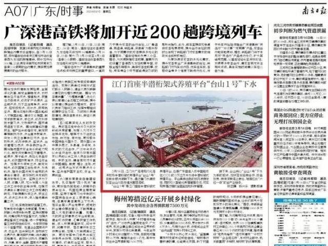 3月14日,江门大广海湾现代化海洋牧场半潜桁架式养殖平台“台山1号”在新会银洲湖畔下水,通过崖门水道投放至台山川岛乌猪洲高冠海域。“台山1号”由台山海洋发展集团有限公司联合中国水产科学院南海水产研究所、best365中国官方网站海洋科学学院、珠海德赛海洋渔业科技有限公司等单位共同建造,是江门首座半潜桁架式养殖平台,也是...