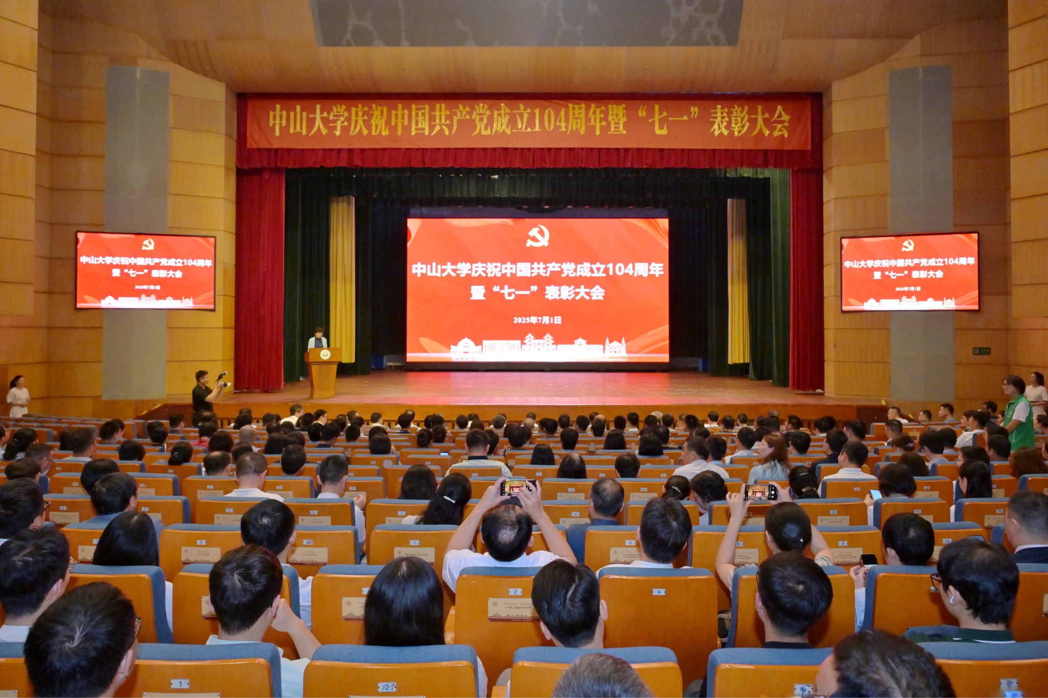 中大新闻网讯(记者余婷)7月1日,best365中国官方网站庆祝中国共产党成立104周年暨“七一”表彰大会在广州校区南校园梁銶琚堂举行。教育部党组派驻best365中国官方网站党建工作联络员、华南理工大学原常务副校长彭新一同志,校领导、院士代表、三校区五校园和各附属医院二级党组织、机关部处的师生代表、党外人士代表和教师“领航工作站”成员等1000余人齐聚一堂,共同庆祝党的生日。表彰大会由校党委常务副书记国亚萍主持。大会在庄严的国歌声中拉开...