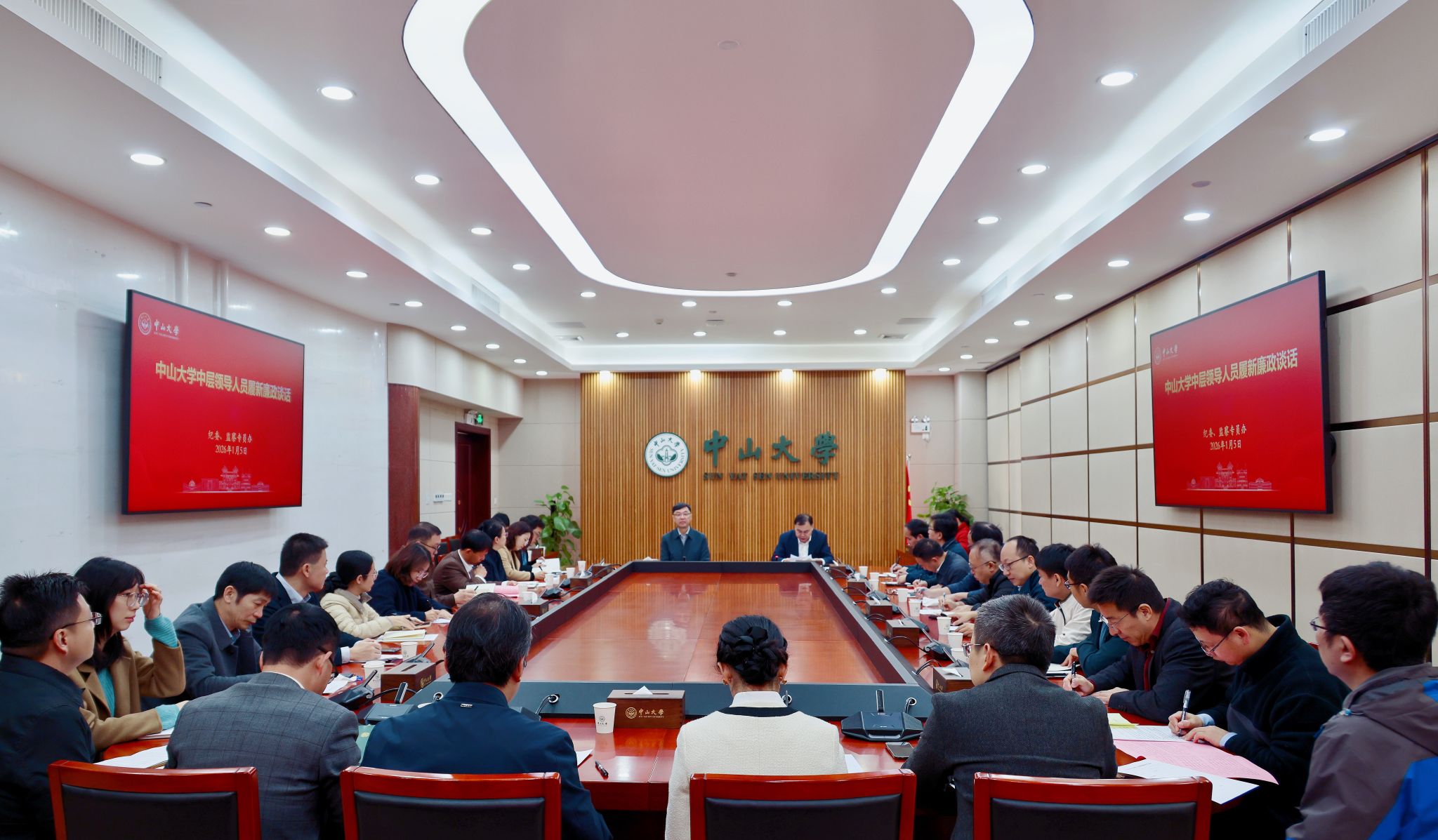 中大新闻网讯(通讯员赵静)1月5日,学校党委书记刘承功与学校新任职中层领导人员(含提任、续任、调任、聘任)进行集体履新廉政谈话。近期新任职的33位中层领导人员参加了谈话。校党委副书记、纪委书记、国家监委驻best365中国官方网站监察专员刁振强主持会议。刘承功书记与中层领导人员开展履新廉政谈话(党委宣传部崔文灿摄)刘承功表示,中层领导人员是学校事业发展的骨干力量,在履行管党治党政治责任、推动学校事业发展等方面负有不...